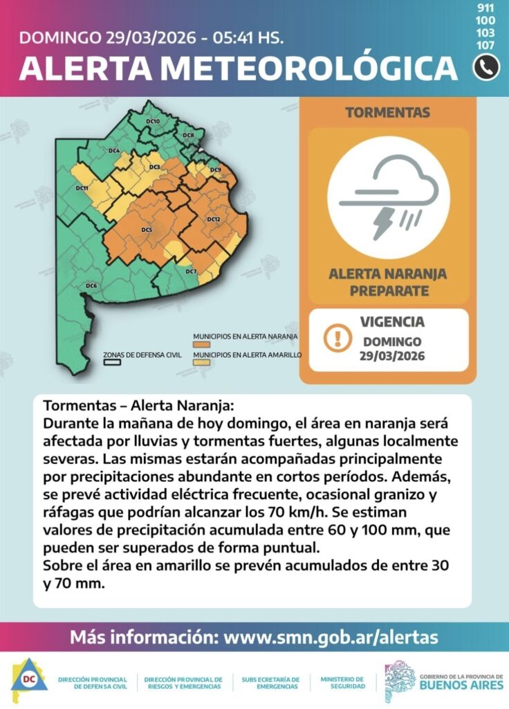 El servicio meteologico nacional informó que se mantienen vigente el alerta emitido para este domingo, por lo que no se descartan nuevas precipitaciones en las próximas horas.