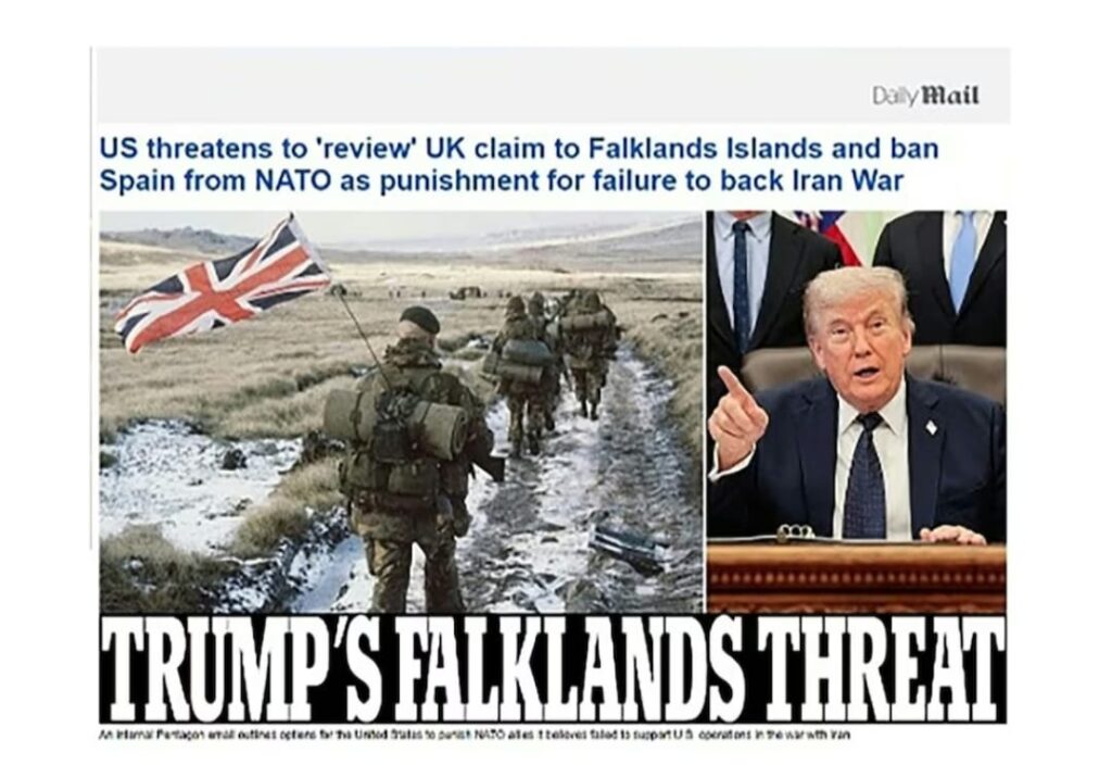 Según trascendió en informes difundidos por la agencia Reuters y replicados por medios internacionales, la posible medida generó titulares alarmantes en diarios británicos, que incluso hablaron de una “amenaza” sobre las islas y advirtieron sobre un quiebre en la tradicional alianza entre Washington y Londres.