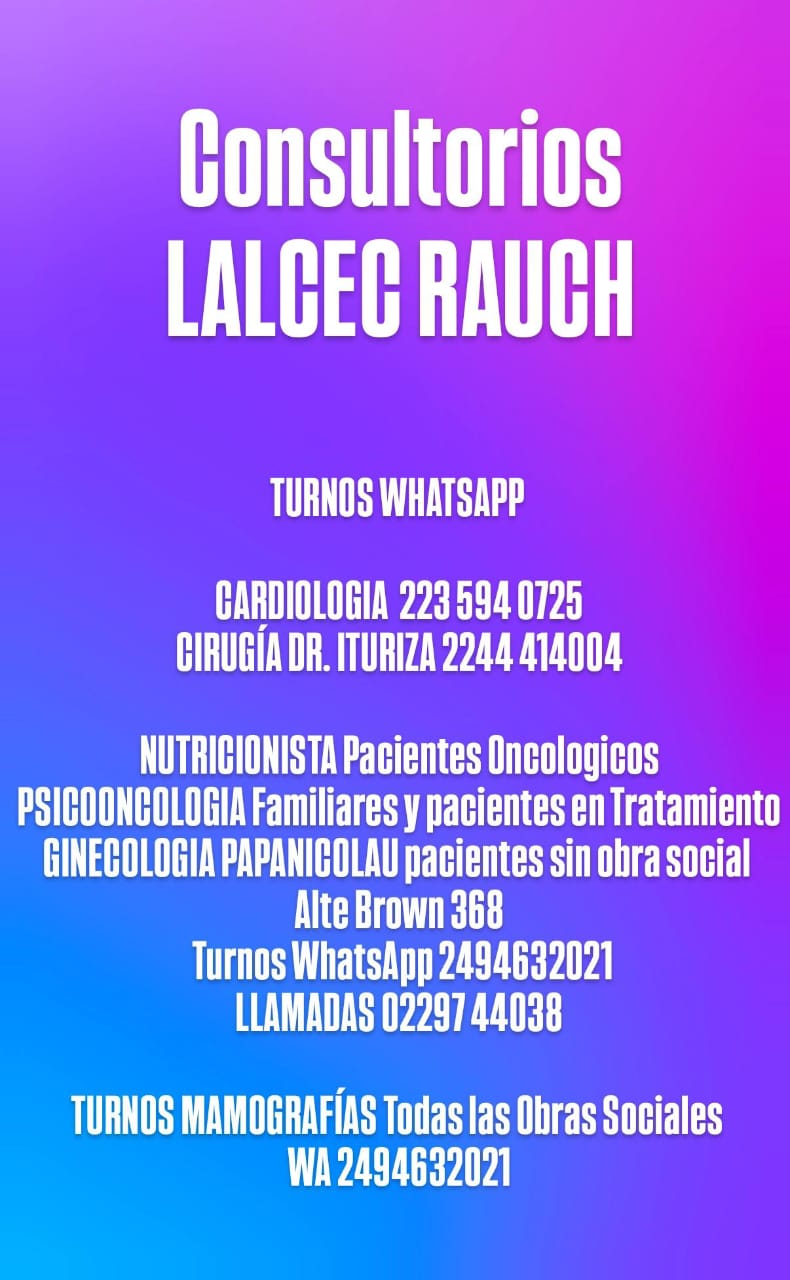 - Cardiología (turnos vía WhatsApp: 223 594 0725)