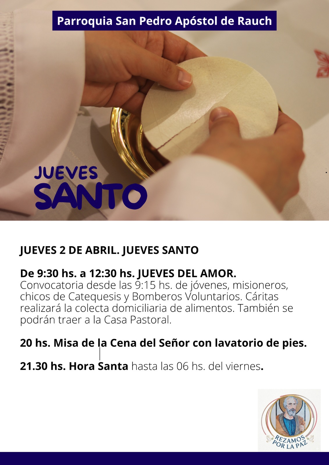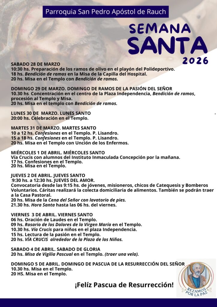 La comunidad de Rauch transita días de profunda reflexión y fe con el desarrollo de las actividades de Semana Santa en la Parroquia San Pedro Apóstol, a cargo del padre Estanislao Fariña.
