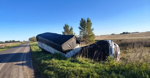 Un camión protagonizó un vuelco en la madrugada de este jueves en la intersección de las rutas provinciales 30 y 50, en cercanías de la rotonda de Di Candilo, a pocos kilómetros de la ciudad de Rauch.